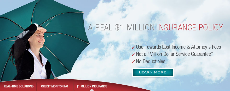 All Members have access to up to $1 Million* in insurance to be used towards lost wages, attorney's fees and other costs required for recovering from theft. No limits, no fine print, no "million dollar service guarantee".